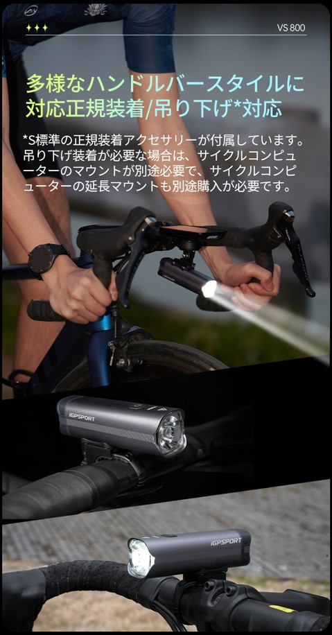 VS1200と比べ、最大800ルーメンと明るさと価格を抑えた新しいフロントライト。