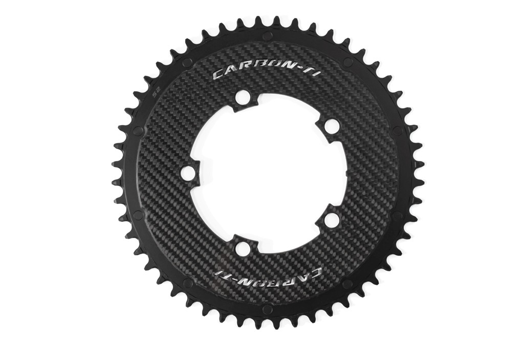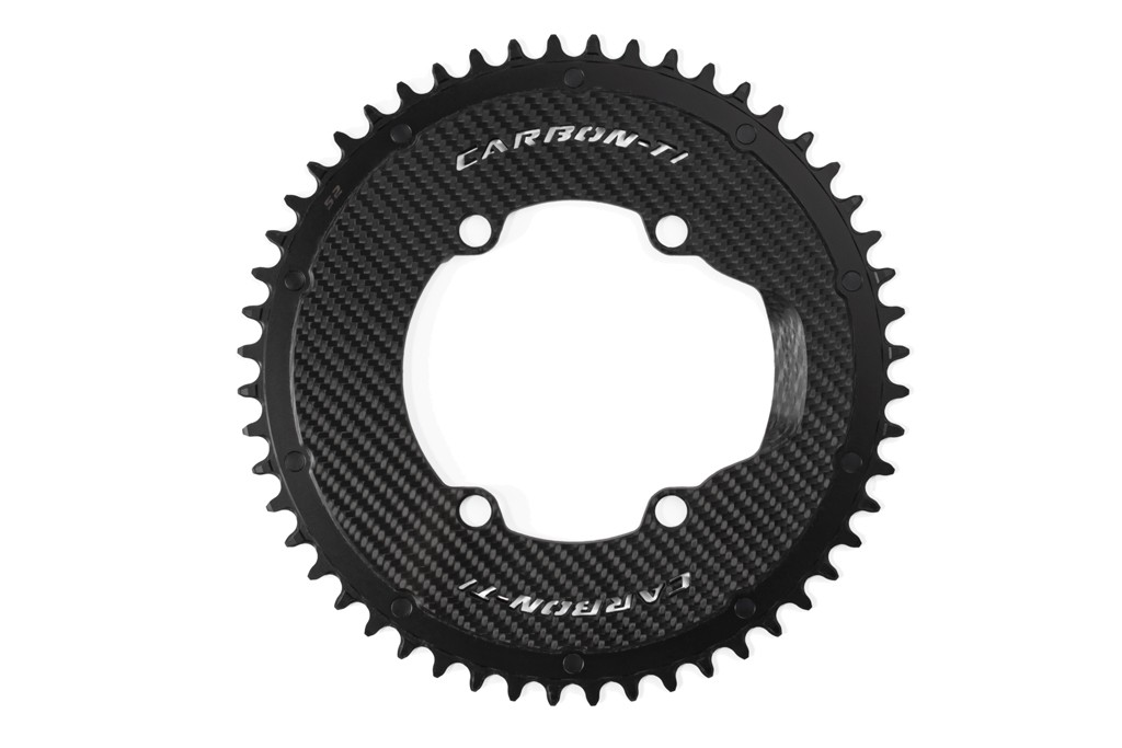 X -SingleCarbonロードチェーンリングは、AL7075-T6合金歯とチタンパーツを備えた構造カーボンファイバー製で、ロード、トライアスロン、タイムトライアル、グラベルレースバイク向けの1xセットアップを大幅にアップグレードします。