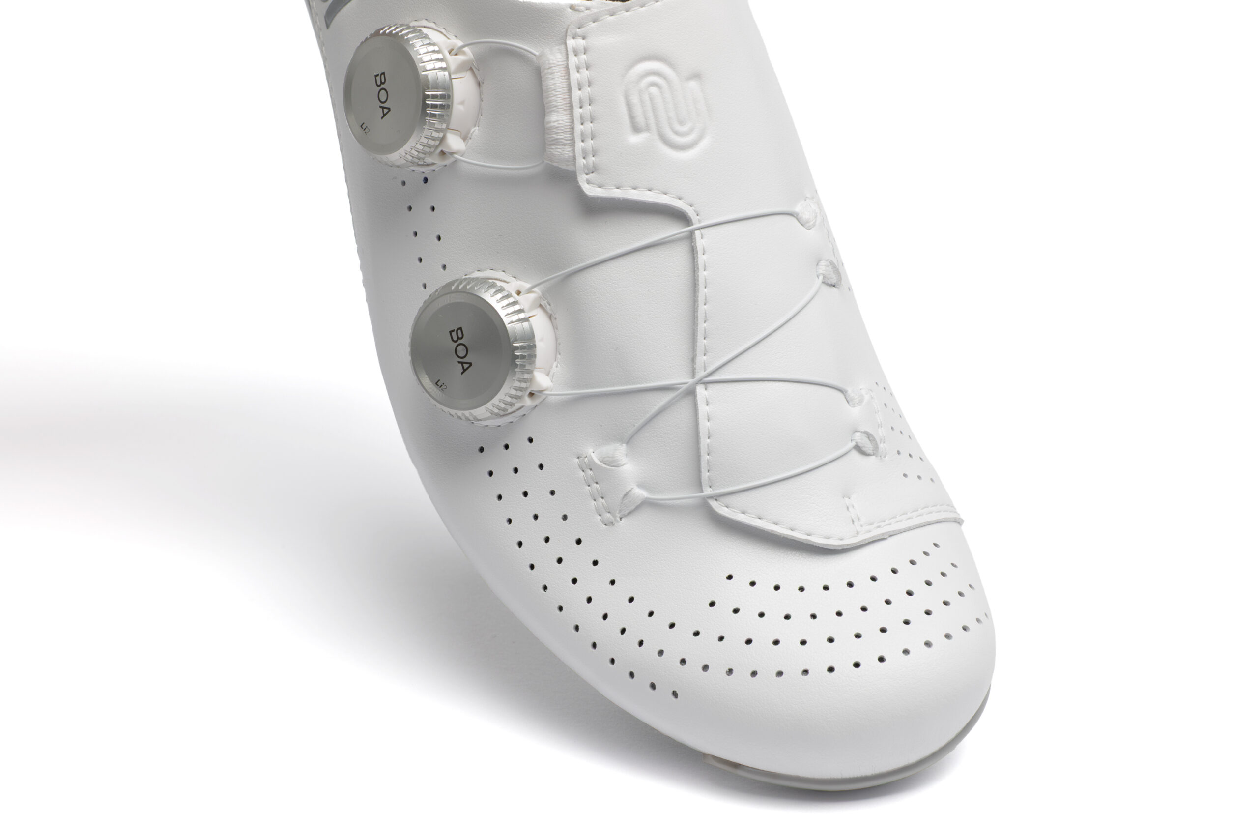 新しいNimbl Ultimate Glideは、高いパフォーマンスと限界までのパフォーマンスを求めるすべてのサイクリストのために設計されています。サイクリストとバイクの一体感を高めるために、このシューズは設計されました。新しいアッパーシステムにより、ライダーの足とシューズのフィット感が飛躍的に向上し、新しいモノコックカーボンシャーシデザインにより、パワー伝達が向上します。